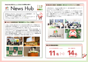日本介護事業株式会社(本社:東京都墨田区、代表取締役:西村 茂、事業統括部長:前田 崇宏)が運営する「Study Hub」は、月刊広報誌『 News Hub 』の2025年12月号を公開いたしました。本誌は、Study Hubを利用されているパートナー(利用者)が作成・編集に携わり、支援の取り組みや各種福祉事業所の紹介を通じて、より多くの方に支援の意義を伝えることを目的としています。