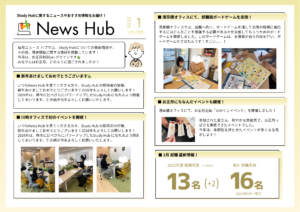 日本介護事業株式会社(本社:東京都墨田区、代表取締役:西村 茂、事業統括部長:前田 崇宏)が運営する「Study Hub」は、月刊広報誌『 News Hub 』の2026年1月号を公開いたしました。本誌は、支援の取り組みや各種福祉事業所の紹介を通じて、より多くの方に支援の意義を伝えることを目的としています。